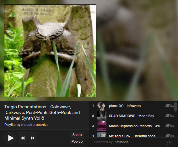 I was hoping for a miserable wet Sunday which would have been my cue for presenting this, the sixth installment of gloomy post-punk. Typically London is bathed in glorious Autumn sunshine today but strangely enough this latest playlist is the perfect accompaniment to gazing out of the window and watching leaves fall off the trees whilst the music pumps through your headphones. Enjoy!
